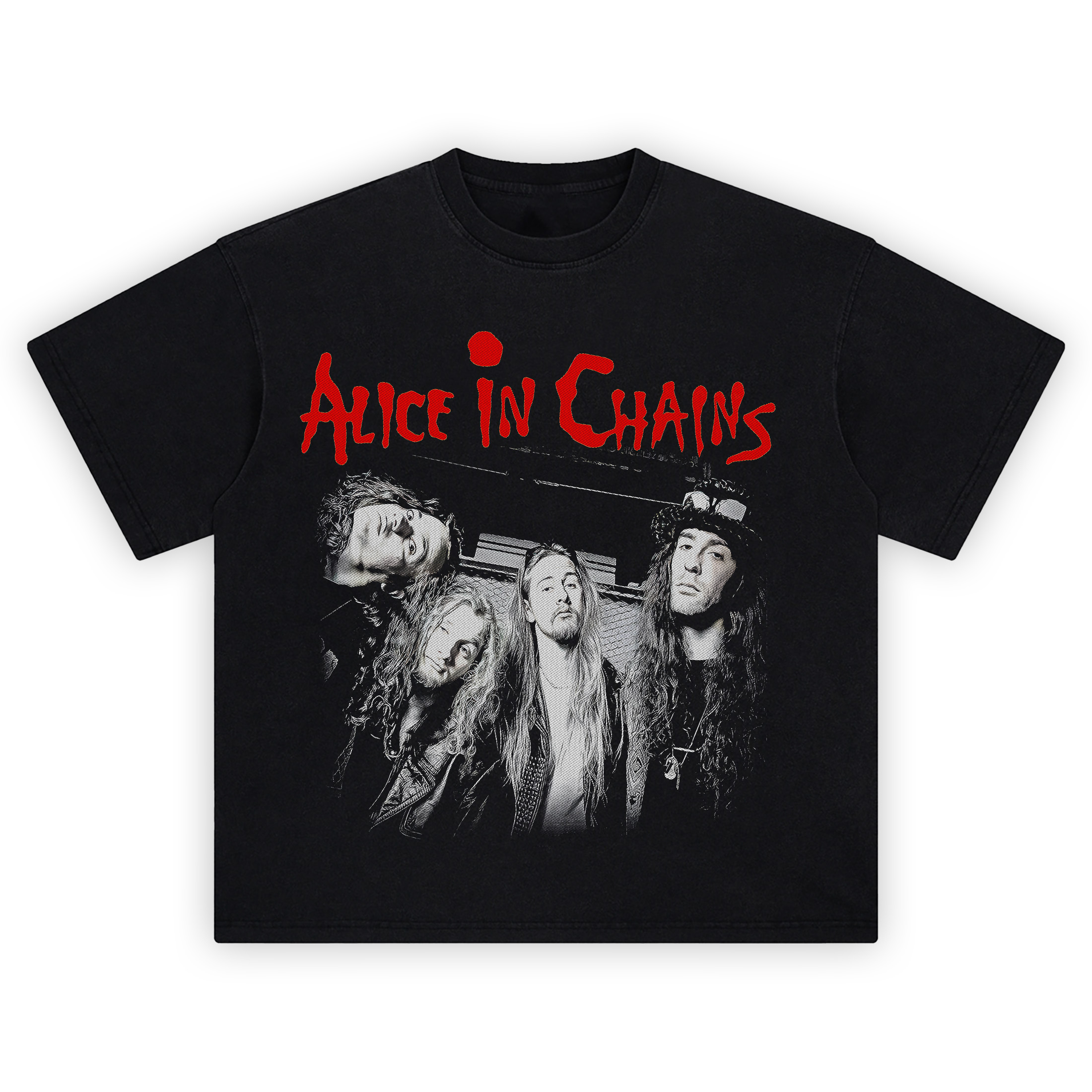 Bring the raw grit of Seattle’s grunge scene to your wardrobe with the Alice in Chains Band Portrait Tee. Featuring an iconic high-contrast black-and-white photo of the band in their prime, topped with the unmistakable red Alice in Chains logo, this shirt captures the attitude and energy of a sound that changed rock forever.