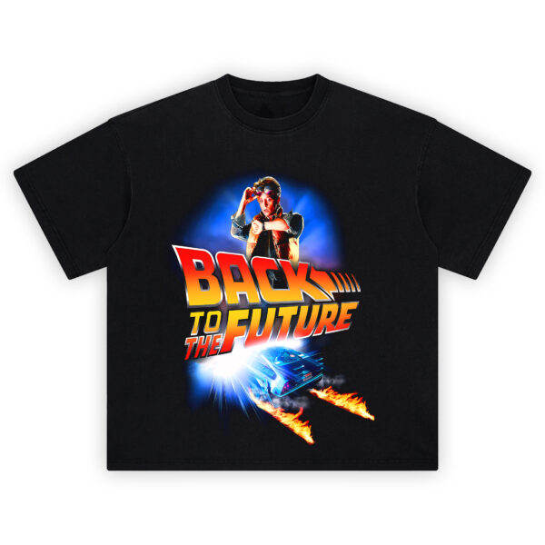 Perfect for fans of the 1985 classic, this retro graphic tee captures the spirit of adventure, nostalgia, and 80s pop culture. The fiery time trail behind the DeLorean and Marty’s legendary puffer vest make this design instantly recognizable to true fans.