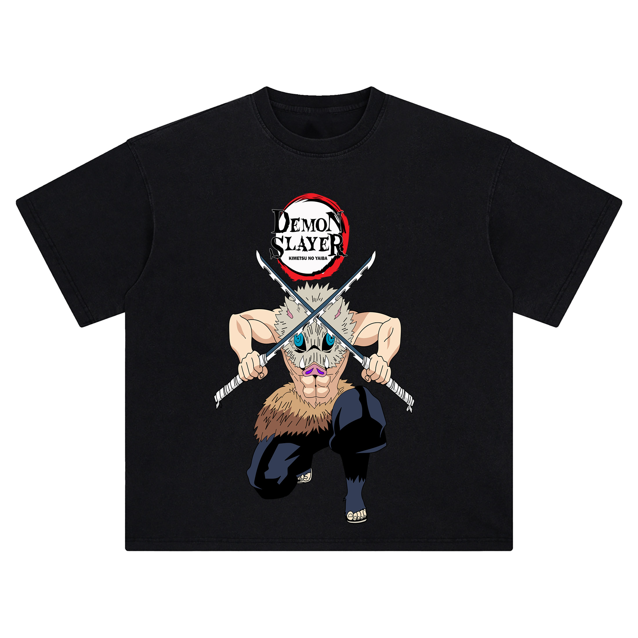 DTG-printed graphic featuring Inosuke with twin blades and boar mask