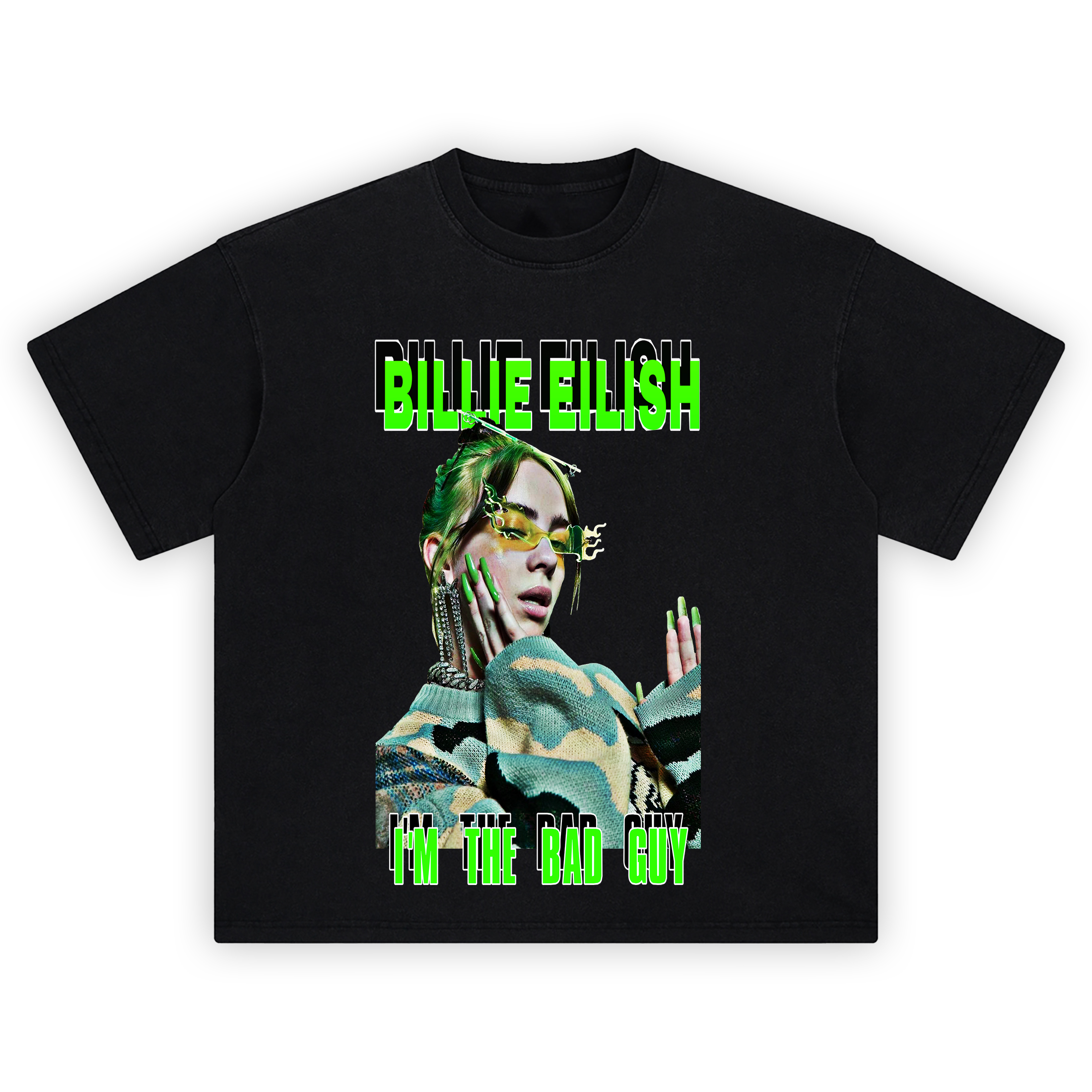 The Billie Eilish Bad Guy Shirt captures the energy, attitude, and unmistakable aesthetic of pop’s most genre-defying icon. Featuring Billie’s signature green-and-black palette, bold flame-shaped glasses, and her unforgettable “I’m the Bad Guy” lyric, this design is made for fans who live and breathe Billie’s fearless style.