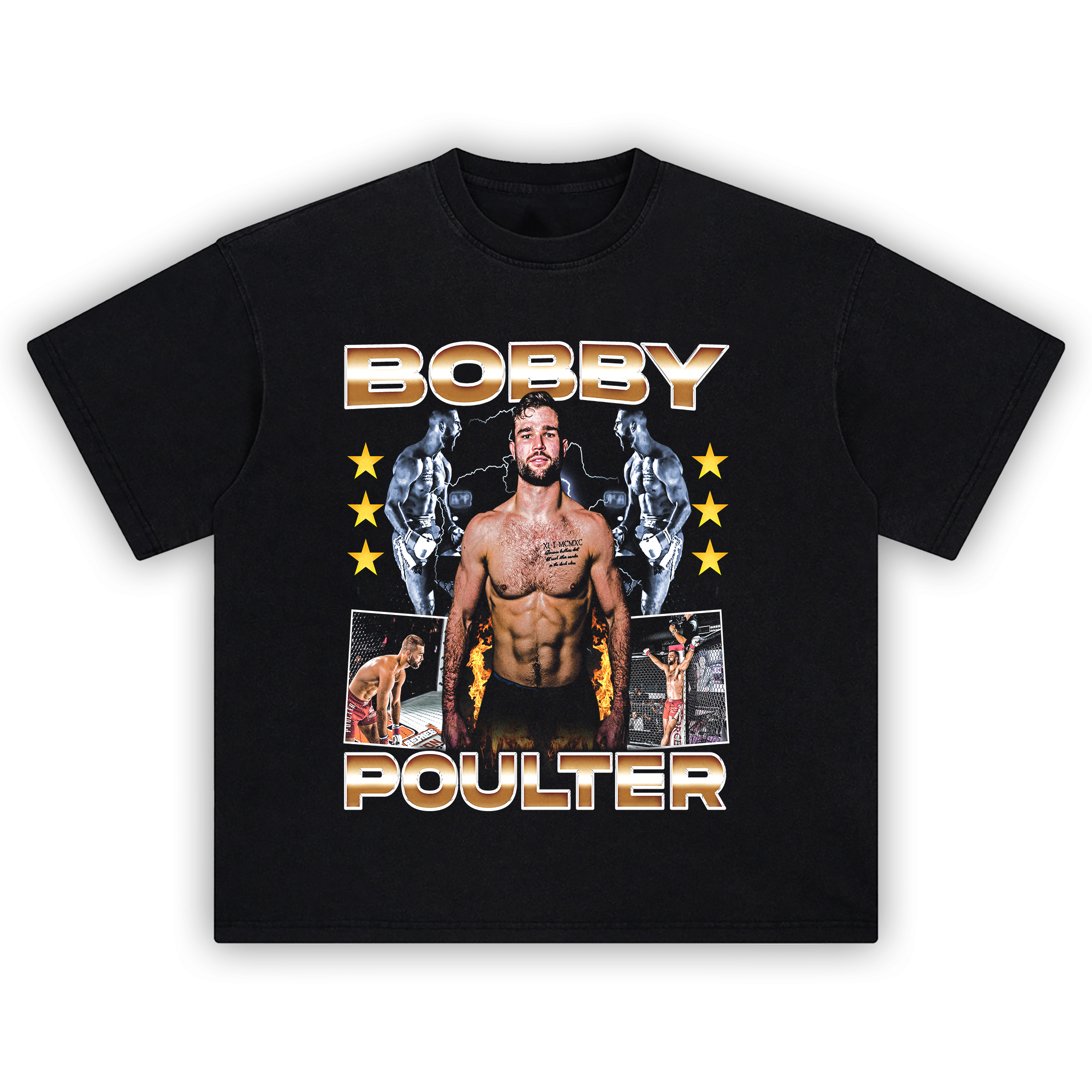 DTG-printed collage of Bobby Poulter’s MMA highlights
