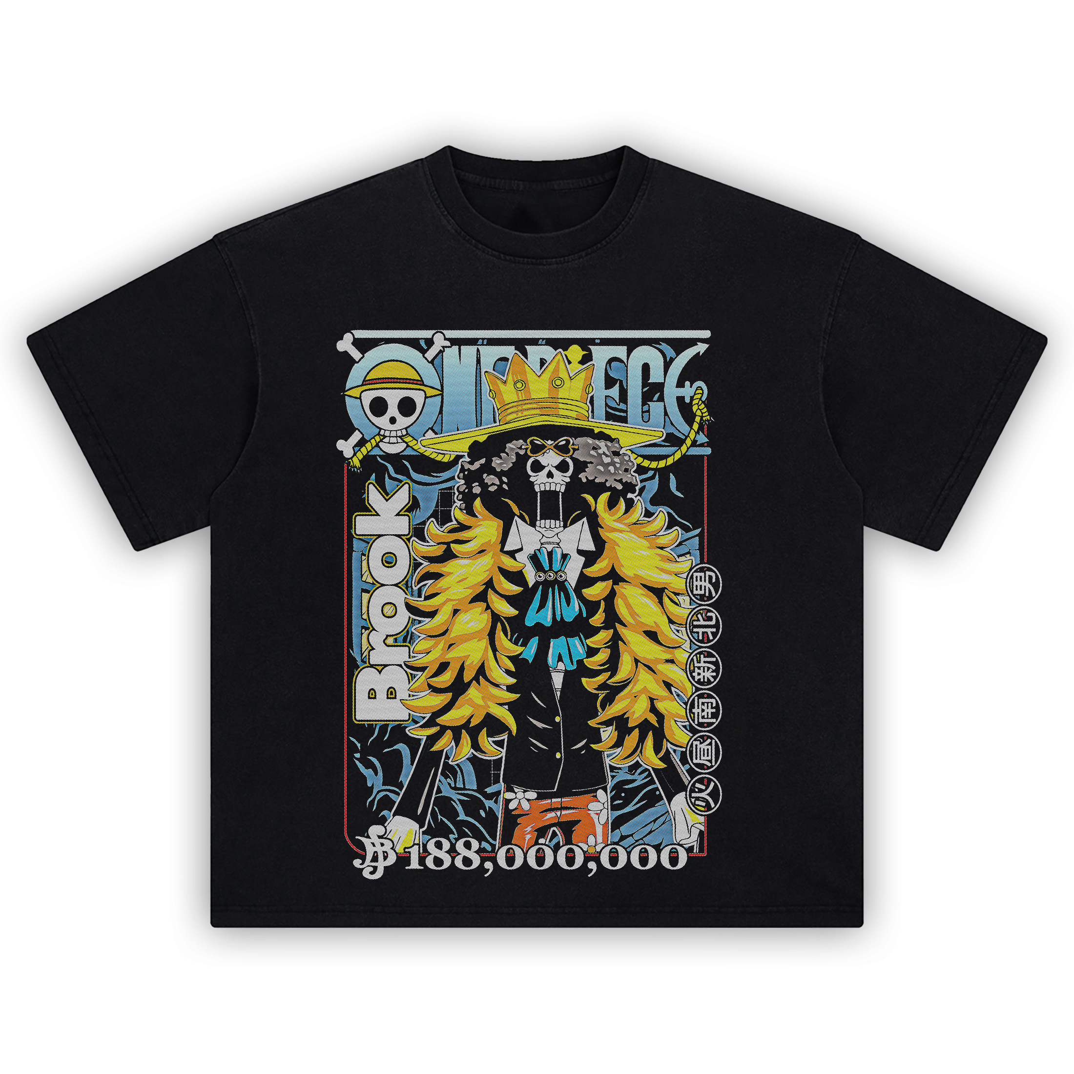 Brook Bounty Tee featuring colorful manga artwork and ¥188M bounty