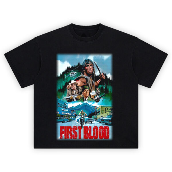 Perfect for fans of 80s action films, this tee taps into the adrenaline, grit, and defiance that made First Blood a genre-defining masterpiece. Whether you grew up on Stalloneโs stoic stare or just discovered the franchise, this shirt lets you wear the legend.