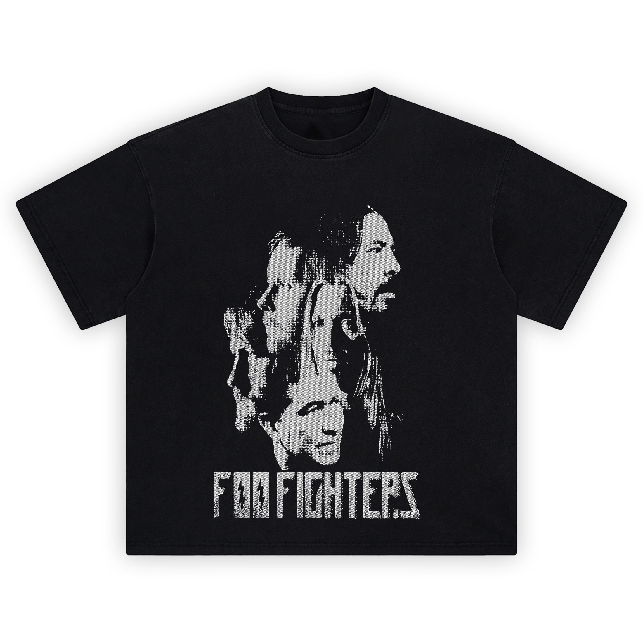 Channel pure alt-rock adrenaline with the Foo Fighters Band Tee, a gritty tribute to the legends who brought post-grunge to the main stage. Featuring a raw, monochrome band portrait with lightning-strike logos and that unmistakable Foo Fighters edge, this shirt speaks volumes without saying a word.