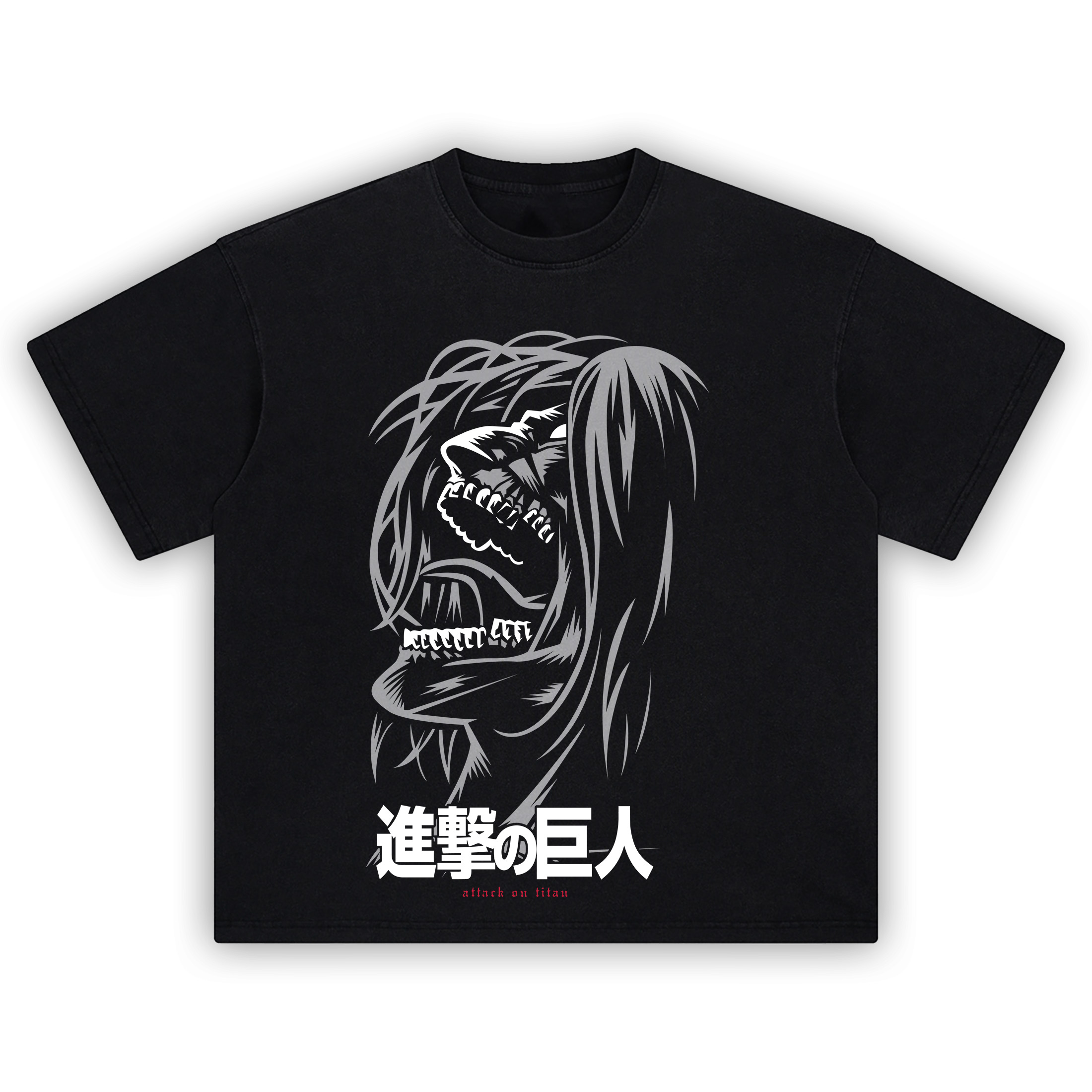Terror incarnate. The Founding Titan Scream Tee captures Eren Yeager’s apocalyptic rage in haunting grayscale glory. With every fang-baring roar and flowing strand of hair, this shirt channels the final form of a man who chose to become a god—or a monster.