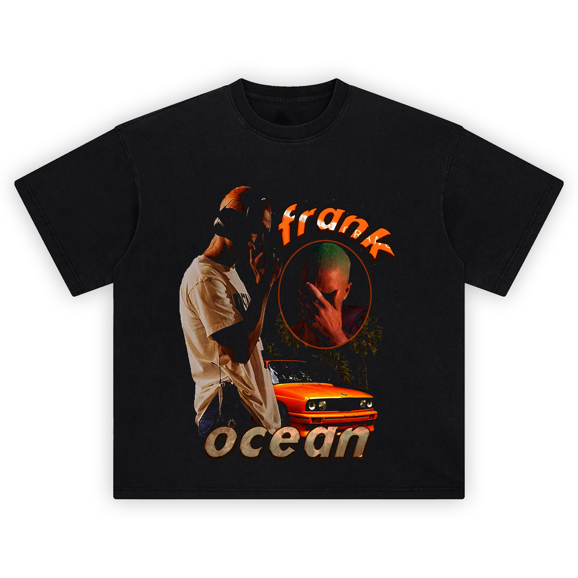 The Frank Ocean Blonde Car Tee is a visual nod to the artist’s deeply emotional, genre-defying style. Centered around a striking image of Frank Ocean with a vivid orange BMW from Blonde, this design captures the raw vulnerability and elegance of his music.