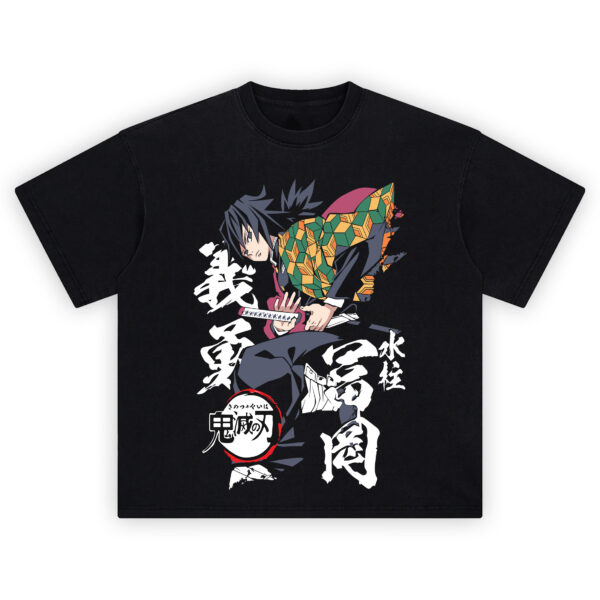 Step into the still strength of the Water Hashira with the Giyu Tomioka Water Hashira T-Shirt. Featuring the calm but deadly swordsman from Demon Slayer: Kimetsu no Yaiba, this design captures Giyu in mid-strike, katana drawn and eyes focused, embodying his graceful power and unshakable discipline. The bold geometric haori—half orange cube, half teal wave—pays homage to his tragic past and unique identity among the Hashira. Stylized kanji and the Kimetsu no Yaiba logo frame the artwork in classic manga fashion. The Giyu Tomioka Water Hashira T-Shirt isn’t just for fans—it’s for those who admire composure in chaos and mastery in motion.