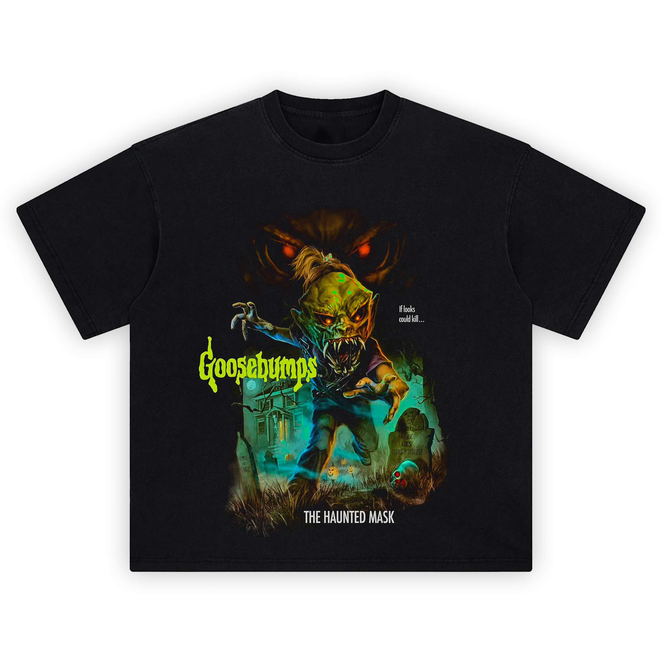 Crafted from high-quality cotton, the Goosebumps Haunted Mask Shirt is perfect for fans of ’90s horror, retro bookworms, and anyone who grew up with the original Goosebumps series. It’s the perfect fit for Halloween lovers who know that sometimes, the scariest face is the one you can’t take off.