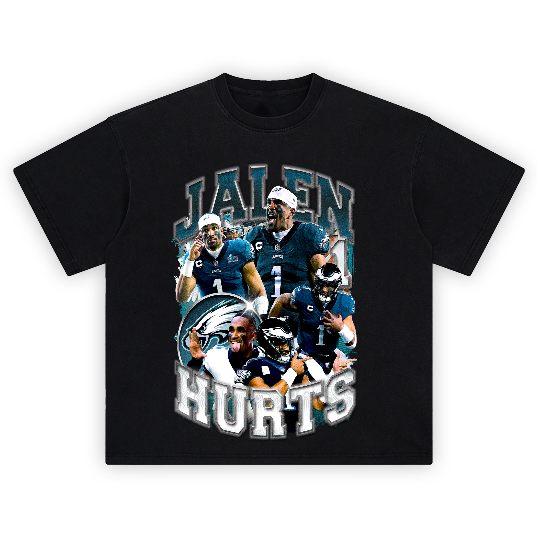 • High-resolution DTG print of Jalen Hurts montage