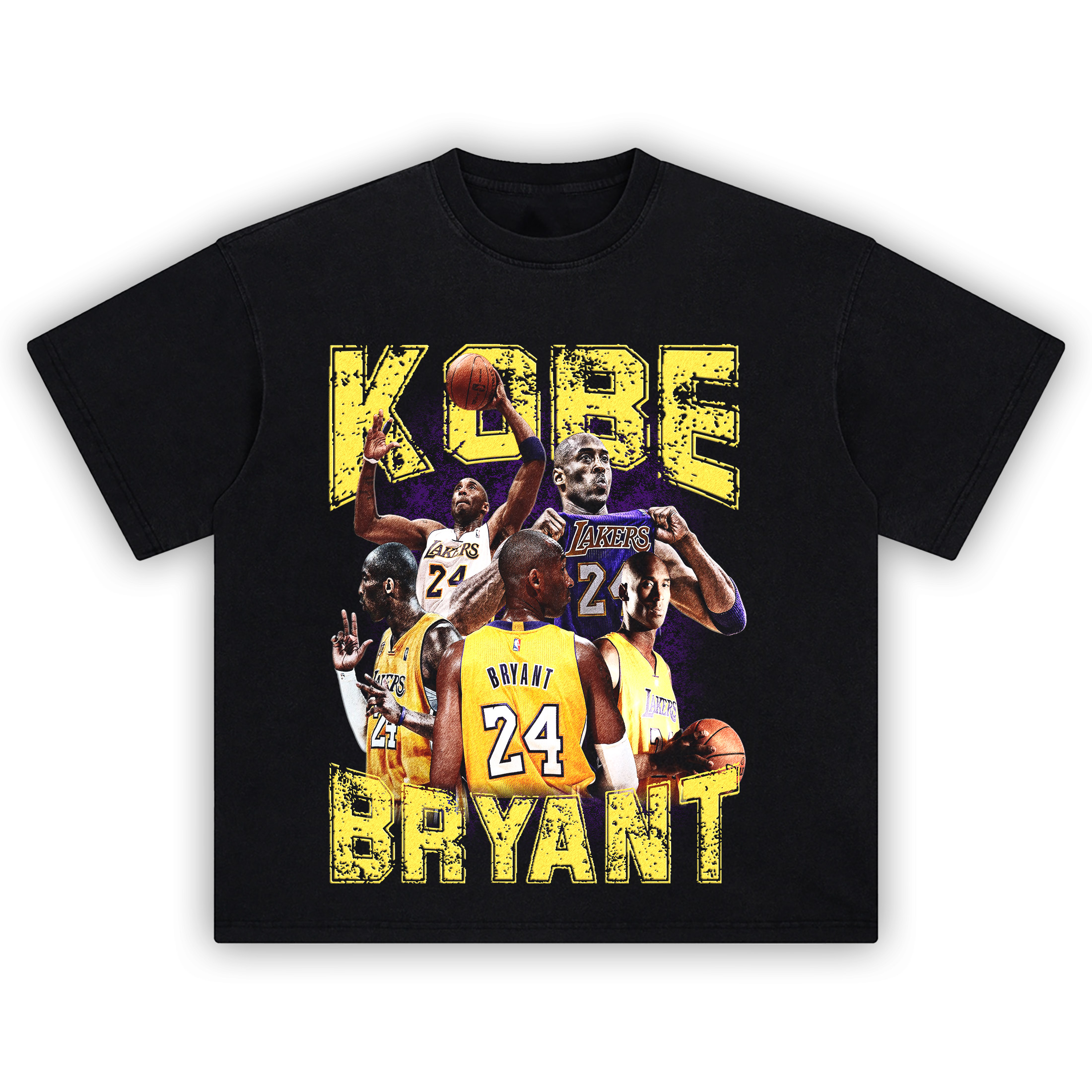 The oversized drop-shoulder fit keeps it relaxed, while the thick 1″ ribbed collar adds a bold edge. Front and center is a crisp DTG-printed collage of Kobe Bryant—from fadeaways in the Forum to clutch moments in the Staples Center—each frame a frozen tribute to his legacy.