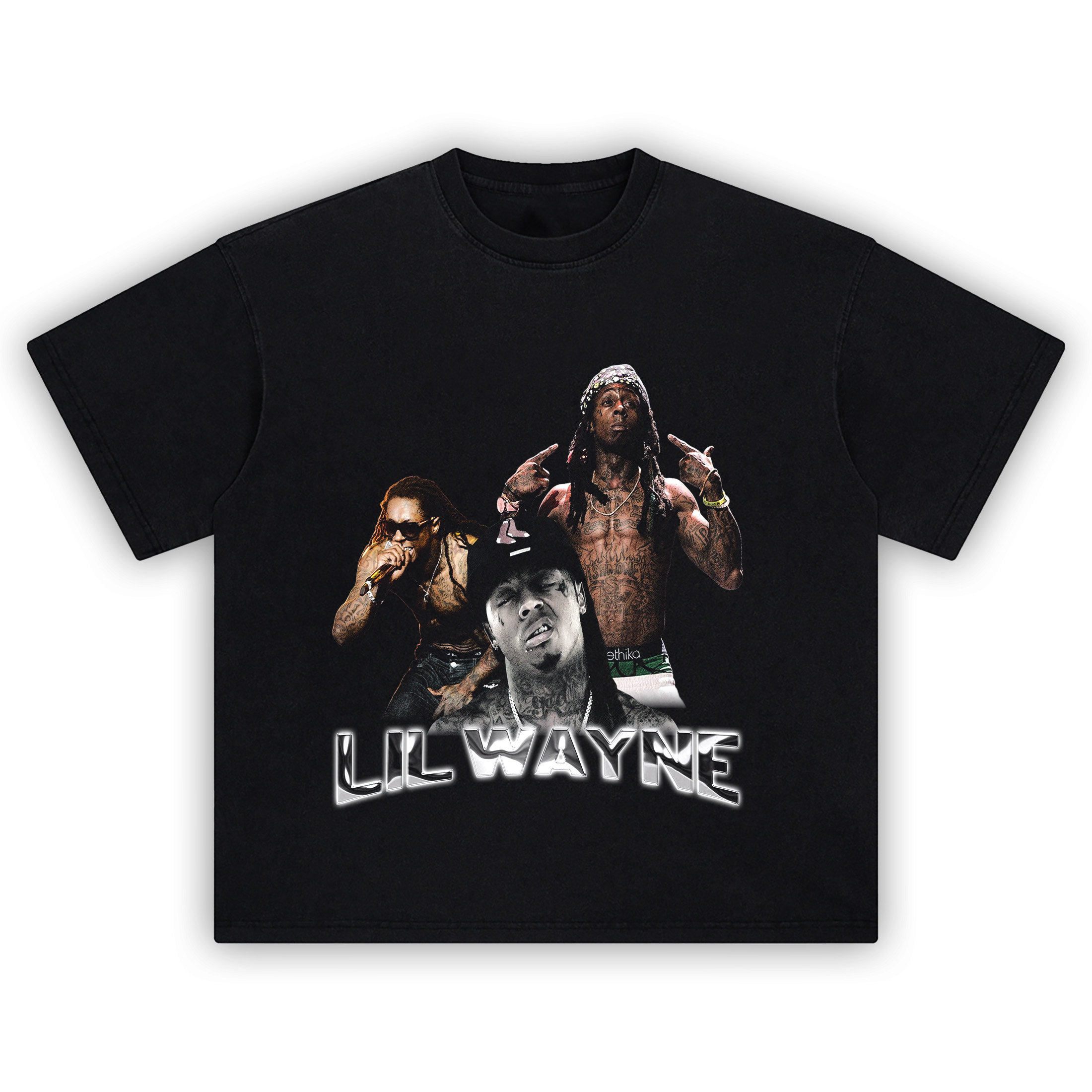 Crafted from premium 7.5 oz / 260 GSM heavyweight cotton, this Lil Wayne T-Shirt is garment-dyed, pre-shrunk, and built with a vintage-washed finish. Its oversized fit, drop shoulders, and bold collar give it that timeless streetwear edge.