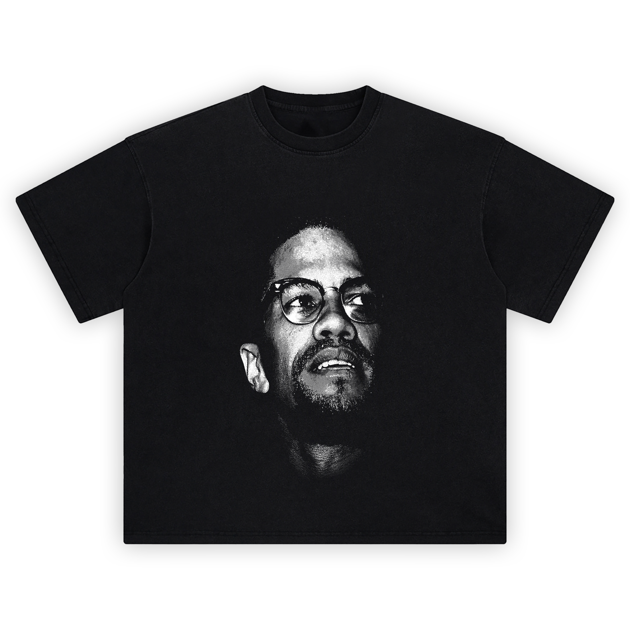 Bold. Unapologetic. Iconic. The Malcolm X Power Portrait T Shirt pays tribute to one of the most powerful voices in American history. Featuring a stark, high-contrast halftone image of Malcolm X in deep thought, this tee captures the intensity and brilliance of his legacy.