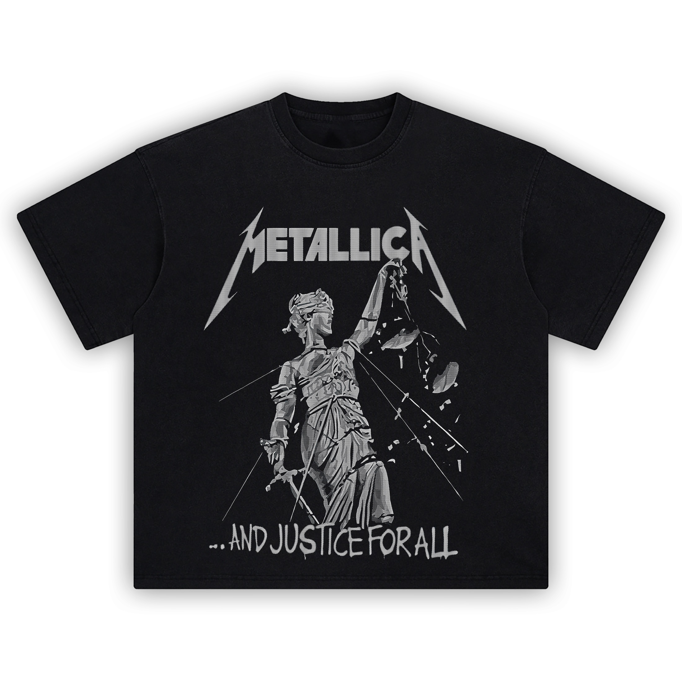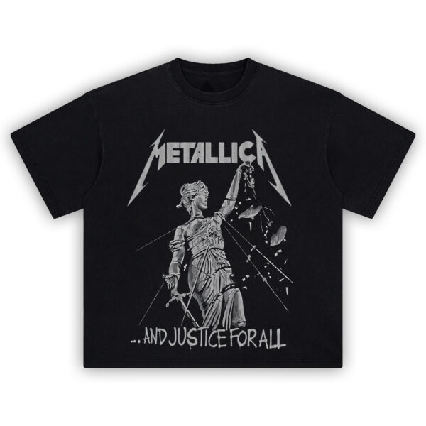 Deliver the verdict of pure thrash with the Metallica And Justice for All Tee—a brutal homage to the iconic 1988 album that reshaped metal with precision and power. Featuring Lady Justice in a state of glorious destruction, bound and breaking beneath the Metallica logo, this shirt screams rebellion against a broken system.