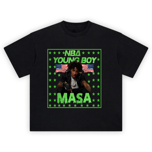 The gritty image of YB sitting in controlโdiamond chains heavy and stare locked inโbacks the message that this isnโt just fashion, itโs legacy. Feel the rebellion, carry the fire, and wear the NBA YoungBoy MASA Tour Flag Stars T Shirt like a flag of your own.