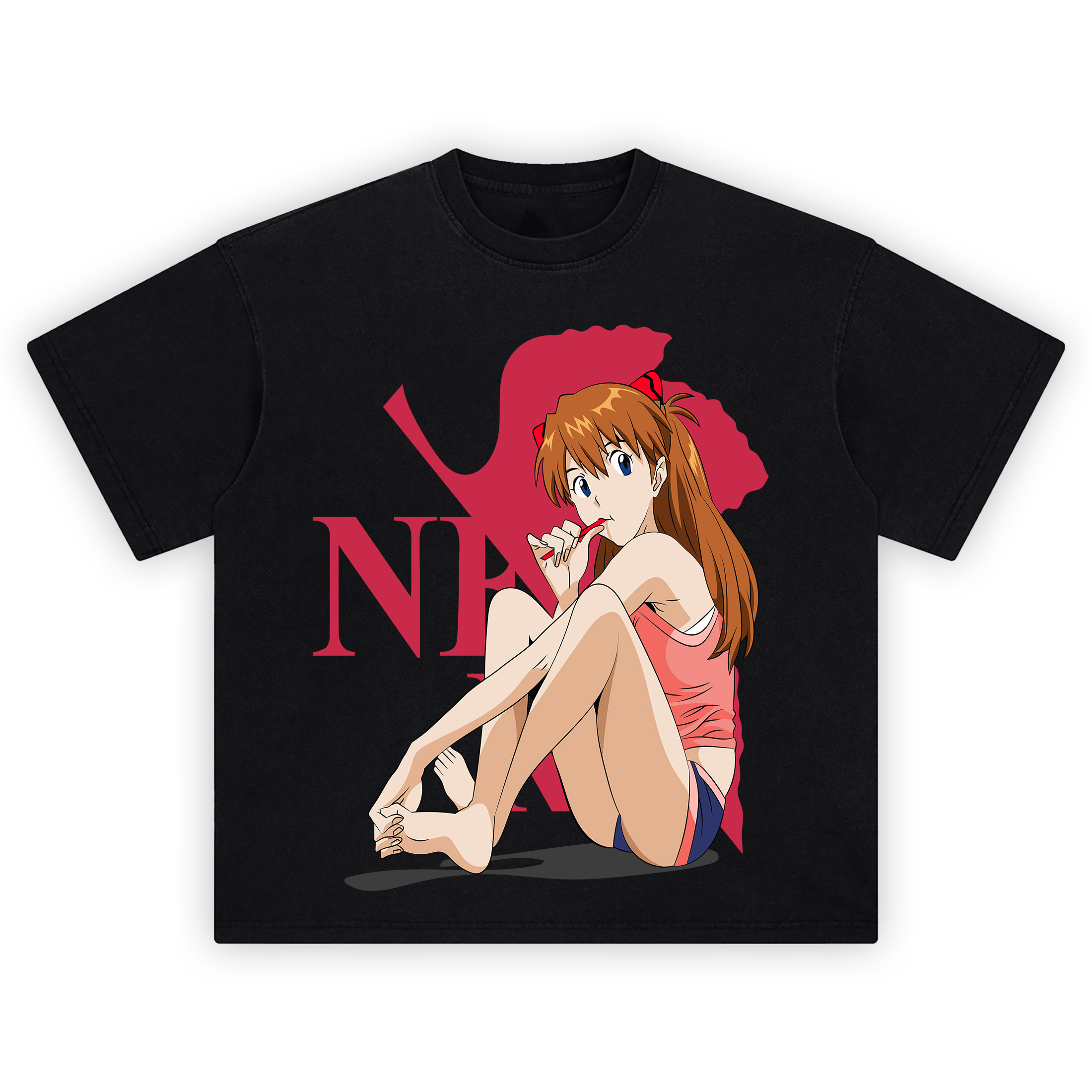 Show your love for classic anime with the NERV Asuka Langley Soryu Lollipop T Shirt, featuring a bold, stylized graphic of a fiery and confident red-haired EVA pilot Asuka Langley Soryu. With a casual pose, lollipop in hand, this design blends attitude with iconic aesthetics.