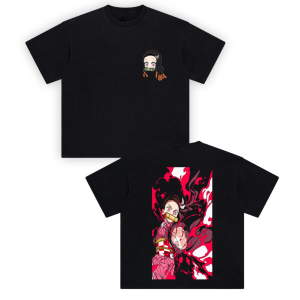 This front-and-back composition is built for outfits: chibi front for everyday stealth mode; turn around and the back serves con-ready wall-poster energy. Pair the Nezuko Blood Demon Art shirt with cargos, a cropped jacket, and sneaker heat for a fit that screams “Protect Tanjiro, delete demons.” If Nezuko’s duality is your thing—adorable and unstoppable—this tee nails it.