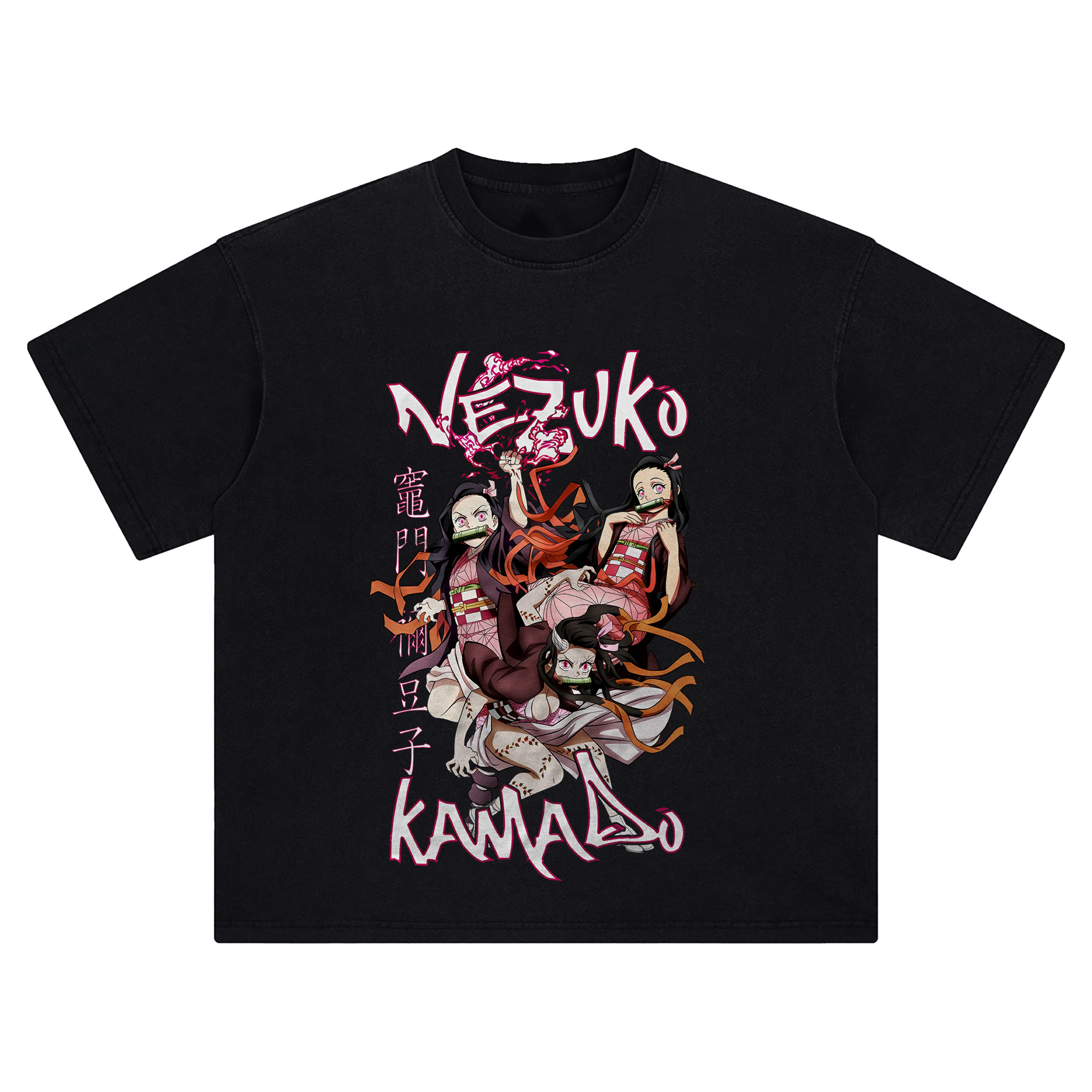 The Nezuko Kamado Tee radiates fierce feminine energy and iconic demon slayer charm with every detail. This triple-variant layout of Nezuko’s most powerful forms—including her horned berserker state—creates a vibrant flow of motion, pink flame accents, and dynamic ribbon wraps across the design.