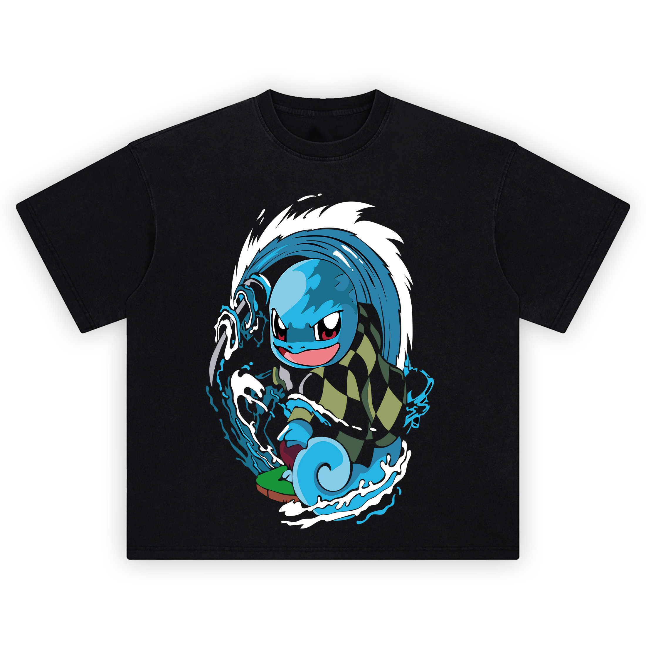 Make a splash with the Squirtle Water Hashira T Shirt, the ultimate fusion of Pokémon power and Demon Slayer drip. This tee reimagines Squirtle as a fierce water-wielding swordsman, decked out in Tanjiro’s iconic green-checkered haori, riding a massive water wave and swinging a katana like a true Hashira.