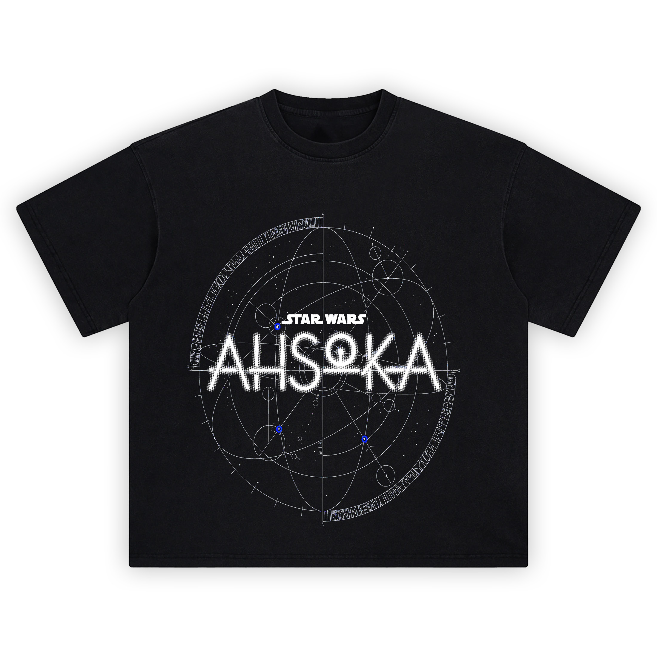 The Star Wars Ahsoka Tee – Star Map Edition draws from the mysticism and mystery of Ahsoka Tano’s path through the galaxy. Featuring the bold AHSOKA title overlaid on ancient star chart geometry and celestial glyphs, this design bridges Jedi legacy with cosmic destiny.