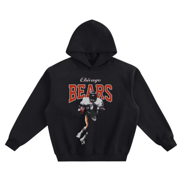 Bring classic Chicago football energy to your lineup with the Walter Payton Chicago Bears Hoodie—a throwback-inspired graphic that captures motion, grit, and pure game-day intensity. Front and center, a #34 running back breaks into the open field with the ball tucked tight, frozen mid-stride like a highlight you’ve seen a thousand times and still can’t forget. Behind the action, bold “Chicago BEARS” lettering fills the space in strong orange tones, creating a clean, instant-read design that hits hard on a black hoodie.