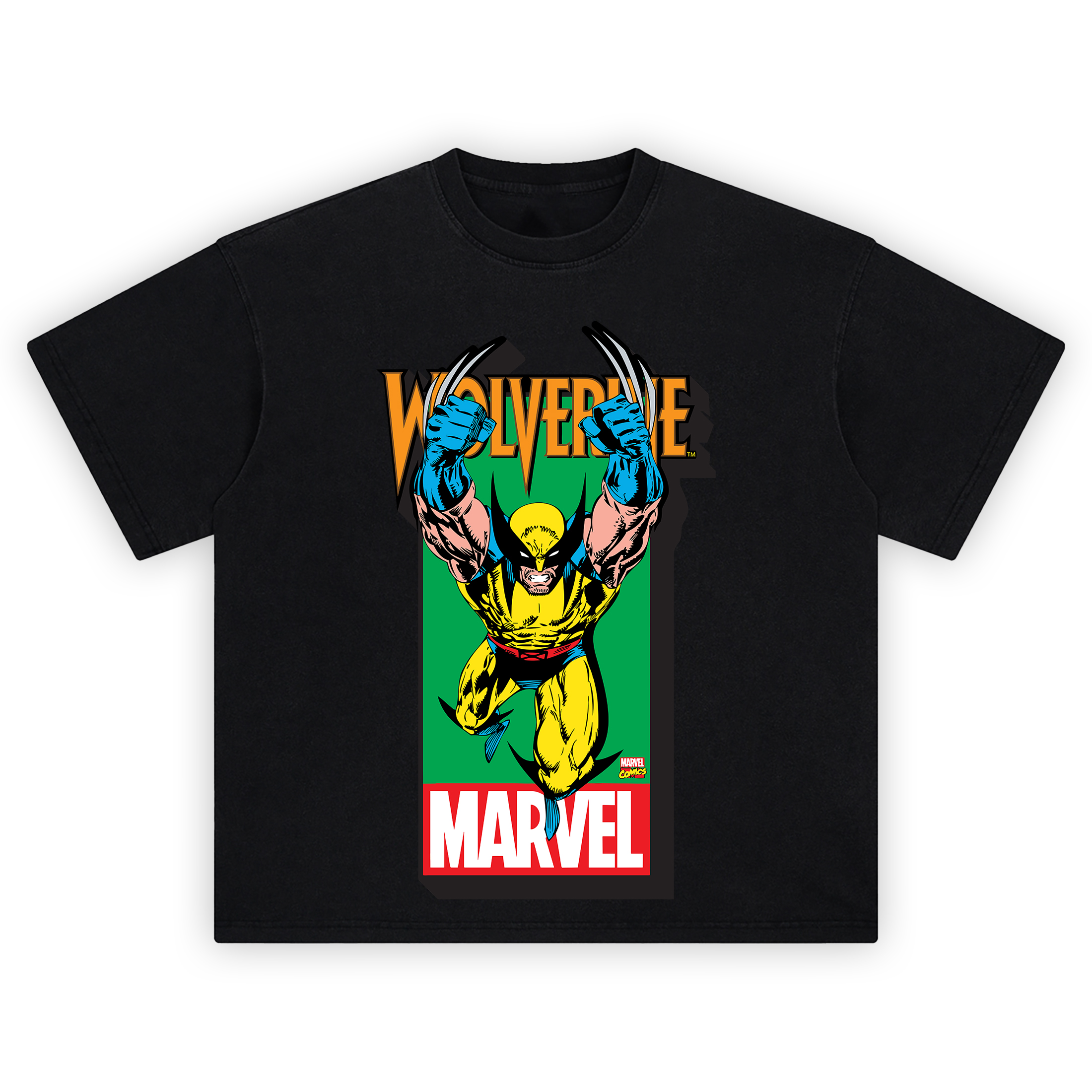 This Wolverine Classic Marvel Graphic T-shirt punches straight through nostalgia with its fierce 90s comic book energy. The tee features an explosive print of Logan mid-air, claws bared, rage dialed to eleven. His classic yellow suit pops against a sharp green backdrop, while bold “Wolverine” and “Marvel” logos frame the moment like a freeze-frame from Saturday morning greatness. Printed in crisp DTG style for high fidelity and color saturation, this shirt doesn’t just show Wolverine—it channels him.